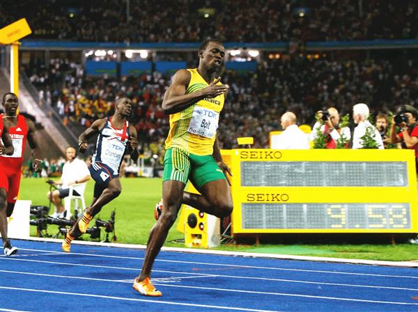 而赛后博尔特的加速度公布出为44.72km/h,所以最终阿萨法·鲍威尔大约就是相差博尔特2米左右,那么0.01秒大约就是半个身位,苏炳添9秒83比阿萨法·鲍威尔9秒84快了0.01秒,最终预估出来,苏炳添的9秒83大约比博尔特的9秒58在实际距离中相差了2米的样子,最夸张的是,博尔特在最后冲到终点的时候,还故意放了下,真是细思极恐!