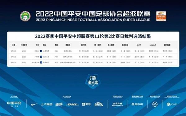 中超第11轮第2比赛日裁判选派安排: