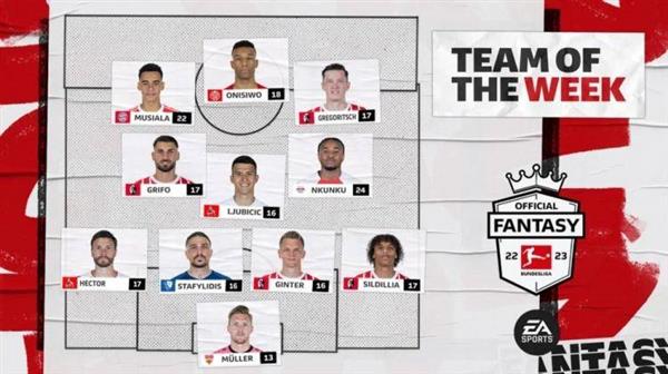 德甲官方首轮最佳阵:穆西亚拉、恩昆库领衔,弗赖堡4将