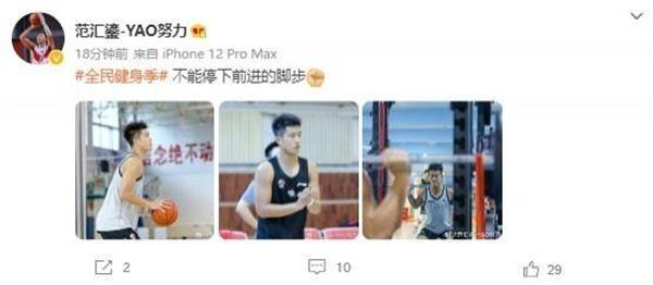 8月8日讯 今日,新疆男篮探花秀范汇鎏更新了个人微博。
