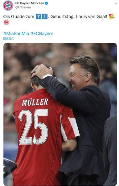 拜仁官推祝老帅范加尔71岁生日快乐,曾率队夺得三项冠军荣誉