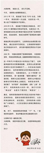 最后,我特别想感谢所有对我这次留洋给予最大支持的协会、国家队和俱乐部的领导们,以及所有品牌伙伴,经纪团队,还有我的家人朋友和广大球迷们,小王在这里给大家隔空鞠躬表达感谢了。
