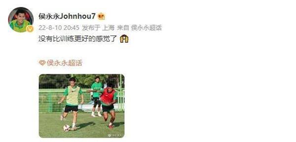 8月11日讯 昨晚,国安归化球员侯永永在个人微博晒出了自己的训练照,或许离自己在正式比赛中复出已经为时不远。