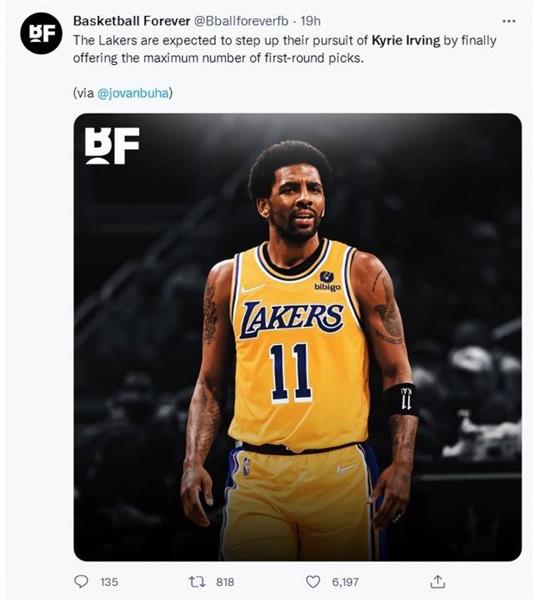 威少、2024年掘金首轮、2026年黄蜂首轮送到篮网换欧文,若扩大一些交易湖人送出纳恩还能换来一个乔-哈里斯,如此一来湖人就为詹姆斯组建了全新的一星四射阵容,罗齐尔+欧文+詹姆斯+华盛顿+托马斯-布莱恩特,替补席乔哈、乌布雷、安德森、沃克、布朗、布克奈特、凯-琼斯。詹欧带队冲冠像极了2016年骑士队。