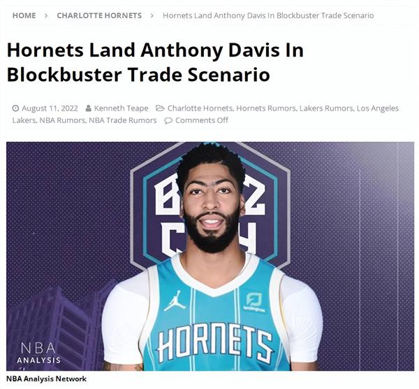 湖人将安东尼-戴维斯、塔伦-霍顿-塔克送到黄蜂换来特里-罗齐尔、小凯利-乌布雷、凯-琼斯、PJ-华盛顿、詹姆斯-布克奈特、2024年掘金首轮、2025年黄蜂首轮互换、2026年黄蜂首轮。也就是2换8的交易。
