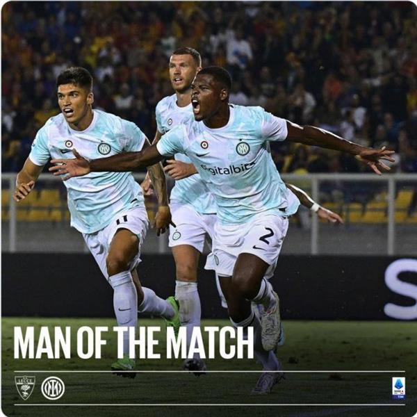 读秒绝杀!邓弗里斯当选对阵莱切一役国米队内最佳球员
