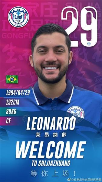 8月16日讯 中甲石家庄功夫官方宣布,28岁前锋若昂-莱昂纳多加盟球队。