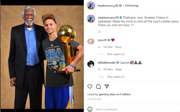 罗素(bill russell)的家人於周日发表声明,指这位殿堂级名将在这天离世,其妻珍妮伴侣左右。其死讯传出後,篮球界人士同声一哭,篮球之神米高佐敦在社交网络哀悼:「罗素为所有黑人球员开路及作为典范,包括我。世界失去一位传奇。」史提芬居里在社交网络上载与罗素的合照,并谓:「篮球界的伟大冠军,令世界不论场内与场外都变得更好。」