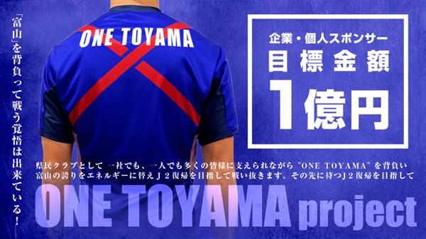为了进一步填平赤字,富山胜利还推出了“同一个富山”计划,并且将富山县加入到了俱乐部名字当中,希望能够从富山县的企业或个人处募集1亿日元的赞助。为了推广计划,俱乐部将“ONE TOYAMA”的口号印在了球衣背面,并且承诺每年在全县开展100次社区服务活动,其中包括服务社区的老年人和参与青少年培养。参与赞助的企业或者组织也将获得在《北日本新闻早报》和球场内的广告位置。目前这项活动已经获得107家企业和44名个人赞助。