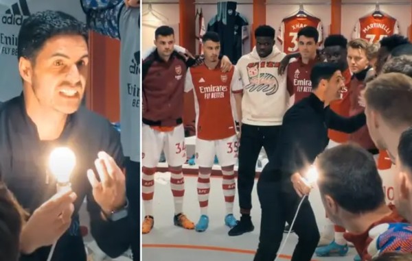 这是球队上季作客白礼顿前在更衣室的情况,阿迪达(mikel arteta)手拿着灯泡,召球员围圈後说:「爱迪生发明了灯泡,但灯泡本身甚麽也不是,今天我想看到一个互相联系的团队力量,我想看到一个因联系而发光的团队。」
