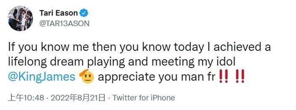 火箭新秀伊森赛后更新社媒,他写道:“如果你了解我的话,那么你知道我实现了毕生的梦想,和我的偶像詹姆斯同场竞技,感谢你们!”