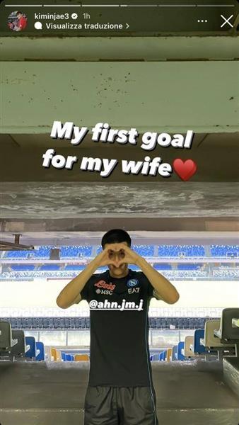 全场补时第3分钟,那不勒斯开出角球,金玟哉头球破门打进个人在意甲的首球。赛后金玟哉在Instagram上表示:“我的第一个进球献给我的妻子。”金玟哉还用双手比出了爱心图案,向妻子示爱。金玟哉在2020年结婚,他曾表示:“我的妻子非常的漂亮,并且性格也很好。”