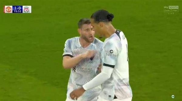 曼联先入一球,丢球后米尔纳与范迪克激烈交流