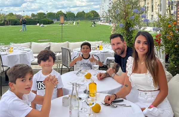 这位阿根廷球星趁周中没有赛事,也毋须回训练场,就驾车带着家人到郊外,在阳光下享受天伦乐。他在ig上载了一张一家五口在餐厅用餐的合照,太太安东妮娜及3名儿子都身穿白衫,惟独这位阿根廷球星是黑衫上身,而餐厅旁边则是一块草地,感觉非常写意。