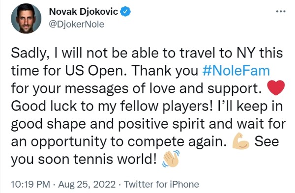 未有接种疫苗一事已令祖高域缺席澳网,失去卫冕的机会,而美网当局随後亦发声明:「祖高域是伟大球手,由於联邦政府对非公民实施严格的接种疫苗规限,很不幸地他不可参加2022美网比赛,我们期待他2023年赛事中再度参赛。」