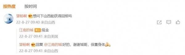 另一名球迷问询山西是否能取得报答,对此他回复道:“现金。”