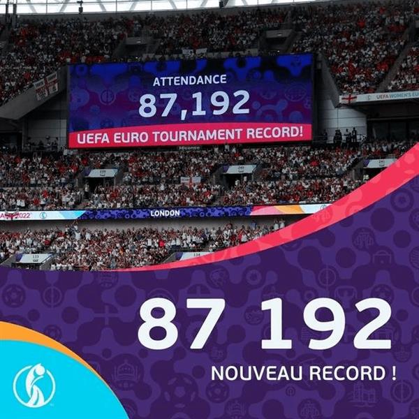 在本届欧锦赛英格兰与德国的决赛更是有87192名球迷来到伦敦温布利球场观赛,同时刷新了女足和男足的欧锦赛决赛的最高观众人数纪录。