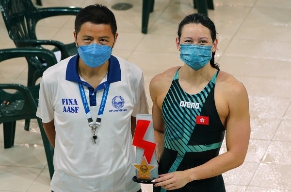日前首夺「星中之星」香港杰出女运动员的何诗蓓,这日转战短池赛事延续强势,她在上午举行的女子100米混合泳以59.45秒率先触池,将香港纪录推快1.18秒下夺冠,同时达年底墨尔本短池世锦赛a标(59.65秒)。