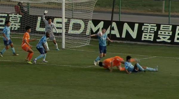 比赛第75分钟,青岛任意球造成南通禁区内混乱,南通后卫魏来手球,但主裁张雷没有表示。