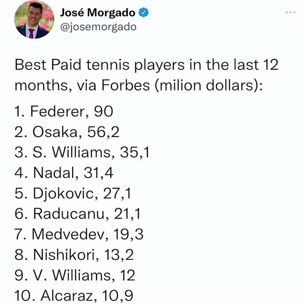 所以说费德勒职业生涯中,竞赛奖金、场外收入,最保守的估量都是80亿元。