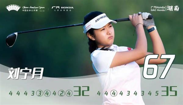 和男子组的激烈争夺相比,女子组是另外一个故事,17岁的武汉姑娘刘宁月以其神勇表现,强力向个人高球生涯首个中国业余公开赛冠军发起冲刺。