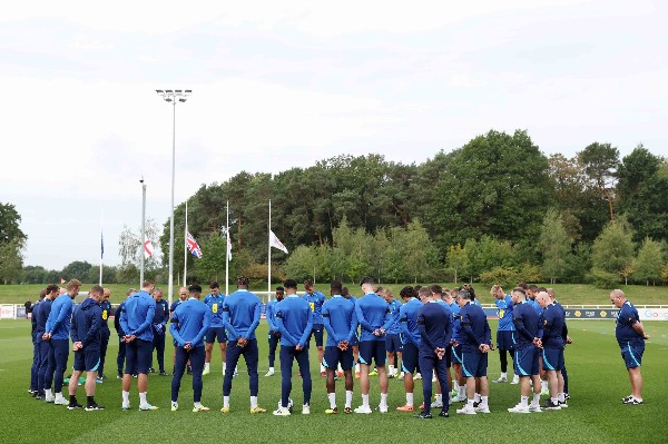 英格兰代表队周二展开操练,大军在努力备战之前,先一起为早前过身的英女王伊莉沙白二世默哀。