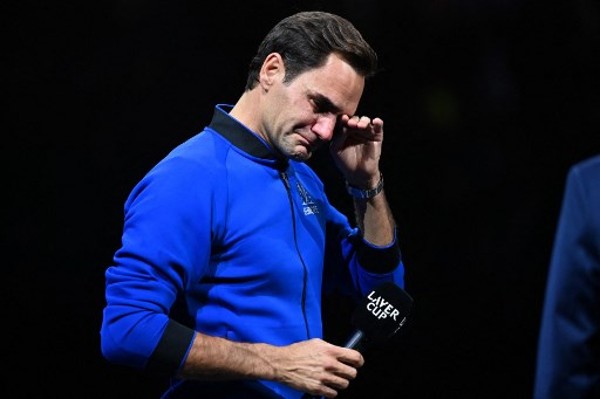 周五利华盃双打战罢职业生涯最後一场之後,费达拿流着泪与大家说再见,同时向24年职业生涯的对手致敬。