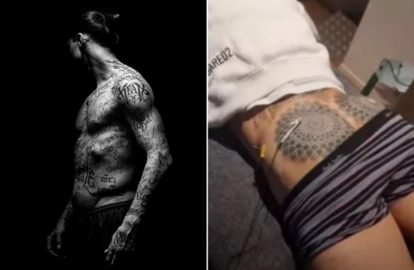 他最近接受电疗的影片在网上流出,影片中看不见趴在床上的伊巴,只有除下裤子後的屁股显露人前,而令人惊讶是,原来伊巴连屁股上都有纹身,两个细致一样的图案,均匀地纹在他两边的股上,而当被电击时屁股抽搐,大家看完是尴尬抑或疗癒,就要看看你喜爱这位41岁ac米兰球星的程度有多高。