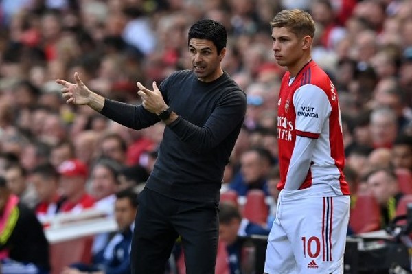史密夫路(emile smith rowe)最近几个月一直受到腹股沟伤势困扰,限制了他训练和上阵时间,最近一次是9月4日对曼联的比赛,以後备身份亮相。