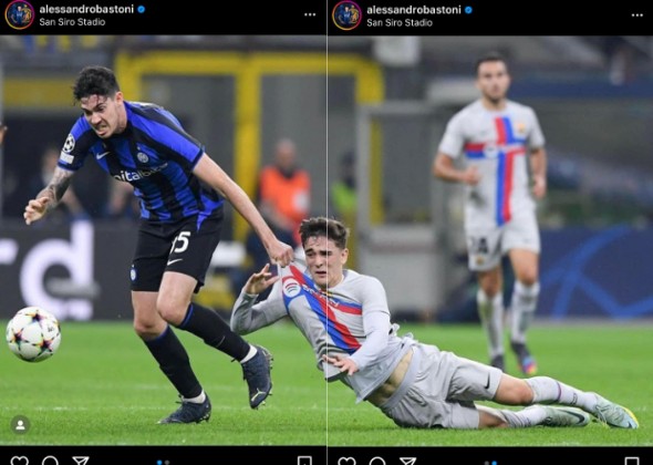 不过,国米球员就没有理会巴塞的抱怨,兴高采烈庆祝之余,巴斯东尼(alessandro bastoni)赛後还上载了一张比赛相片,是他和敌军中场加维争夺皮球时,後者已跌倒仍被他拉住球衣,好像「拖行」着对方一样。这位中坚还在附注写道:「心灵和个性的胜利。」