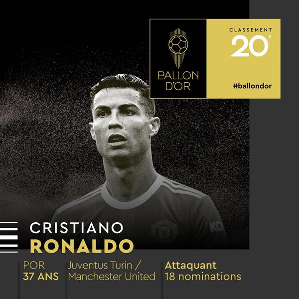 今日2022年金球奖颁奖典礼在法国举办,官方发布排名金球奖:C罗第20名。