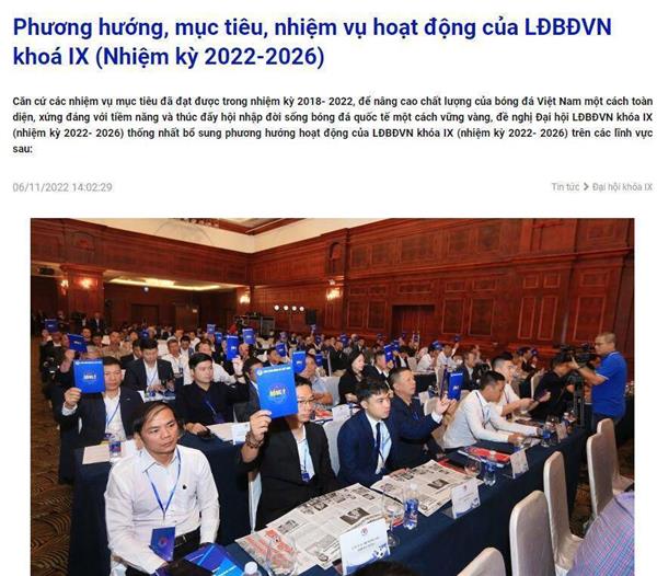 11月7日,越南足协昨日召开代表大会,选举新主协主席等领导层,确定工作方向和目标。