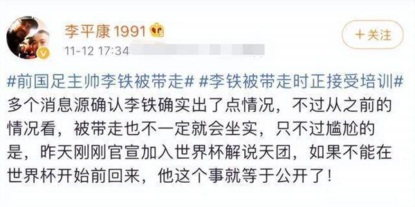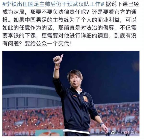 曝前国足主帅李铁被带走调查,疑似涉嫌操控比赛,网友呼吁要严查