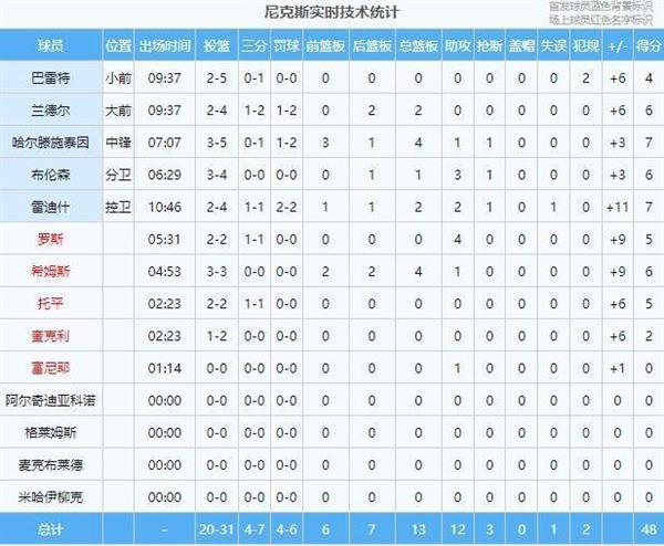 尼克斯队在第一节的进攻表现非常出色,全队31投20中,三分球7中4。