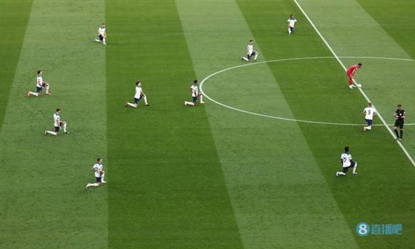 比赛开始前,英格兰球员单膝下跪,表示支持反种族歧视。