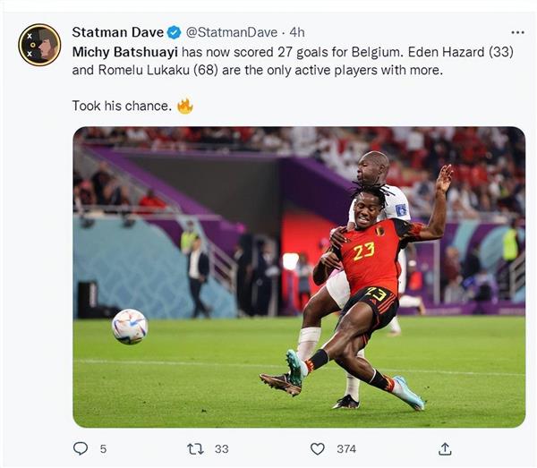 巴舒亚伊也创造了比利时男子足球队27个进球的纪录,在阿扎尔33个和卢卡库68个之后排名第三。