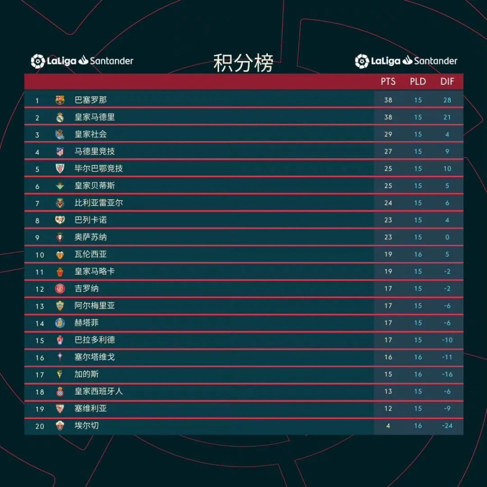 在积分榜面,客场获胜的加的斯成功逃离倒数第三名,而西班牙人不幸落入降级区;同样客场获胜的塞尔塔也在积分榜上攀升到第16位,而开赛以来表现不佳的埃尔切依然一胜难求,积分垫底