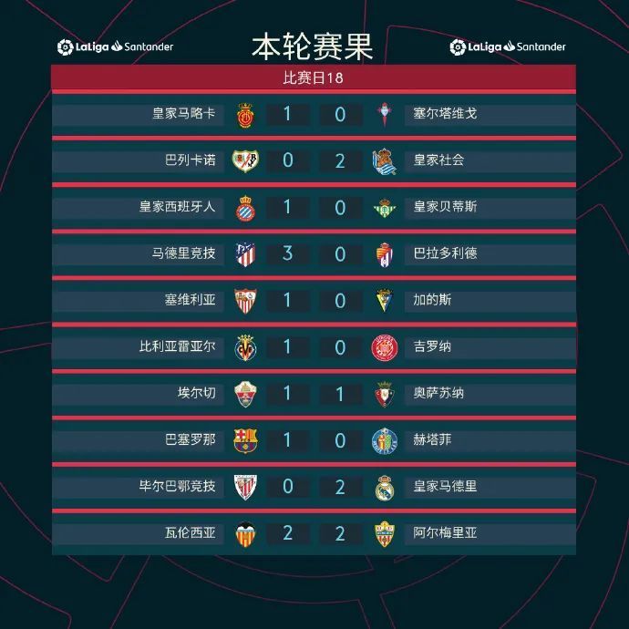 在积分榜方面,在收获平局后,“蝙蝠军团”已经连续三场在联赛中获胜。由于净胜球优势,他们在本轮比赛中得到一分,超过西班牙人排名第12位,阿尔梅里亚排名第14位。本轮结束后,巴塞罗那、皇家马德里和皇家社会排名前三。塞维利亚排名上升到15位,暂时脱离降级区。