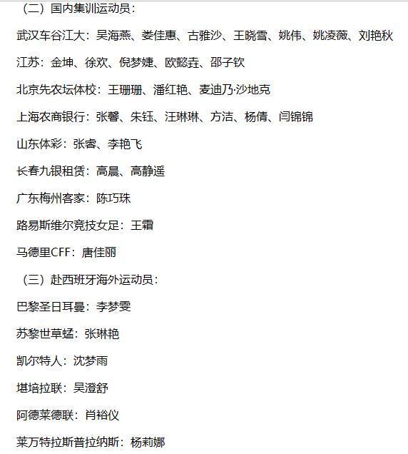 中国女足训练名单。
