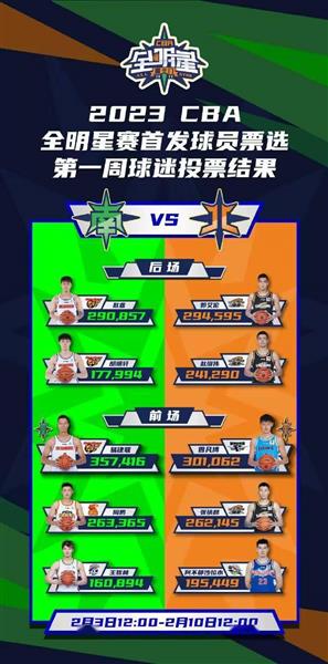 2月10日讯2023年CBA全明星赛首发球员投票第一周: