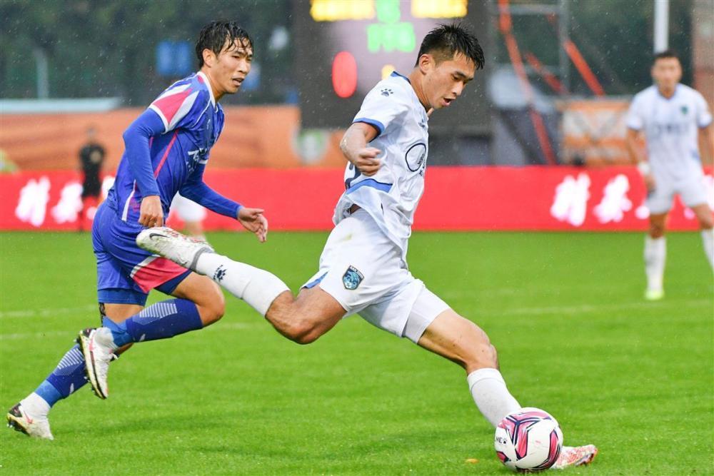 在比赛中,南通支云球员雷文杰(左)
