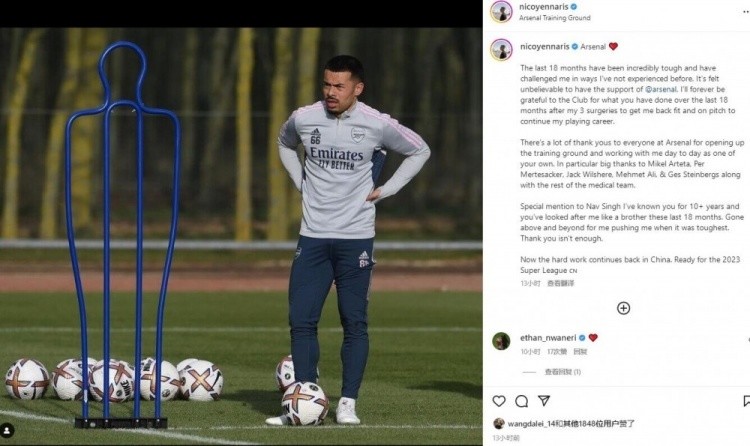 2月10日——在个人社交媒体平台上,国安球员李可致谢母队阿森纳在他康复期间的帮助。