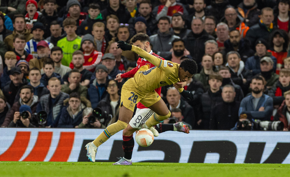 在2022-2023赛季欧罗巴联赛淘汰赛附加赛的第二回合比赛中,英超的曼彻斯特联队主场以2比1击败西甲的巴塞罗那队,总比分4比3,晋级16强。