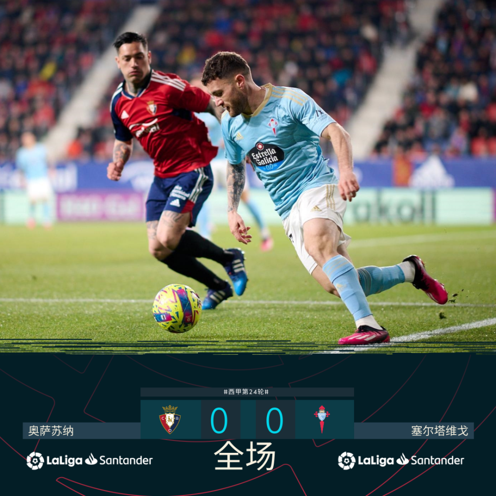 今早,西甲第24轮迎来了最后一场比赛。奥萨苏纳主场0-0战平塞尔塔维戈。