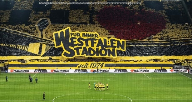 多特南看台球迷在2-1击败柏林联的主场比赛之前,为了庆祝主场49岁生日(4月2日),打出了一幅巨大的TIFO,上面写着“永远的威斯特法伦球场,从1974开始”。