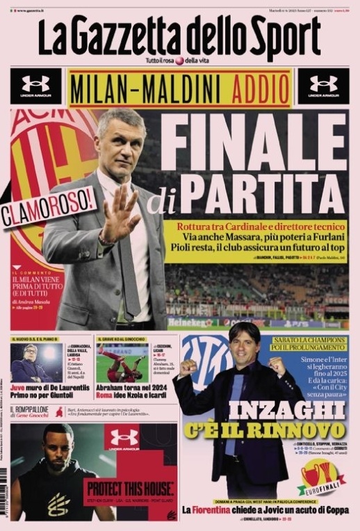 在最后的战斗中,卡尔迪纳莱和马尔蒂尼决裂,马萨拉即将离开。弗拉尼(AC米兰CEO)将获得更大的权力。皮奥利留任,俱乐部保证有一个光明的未来。