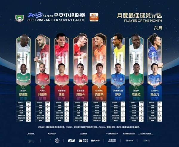 中国超级联赛官方今日宣布了6月份最佳球员的候选名单,其中包括穆谢奎、科维奇、奥斯卡等共计8位球员。