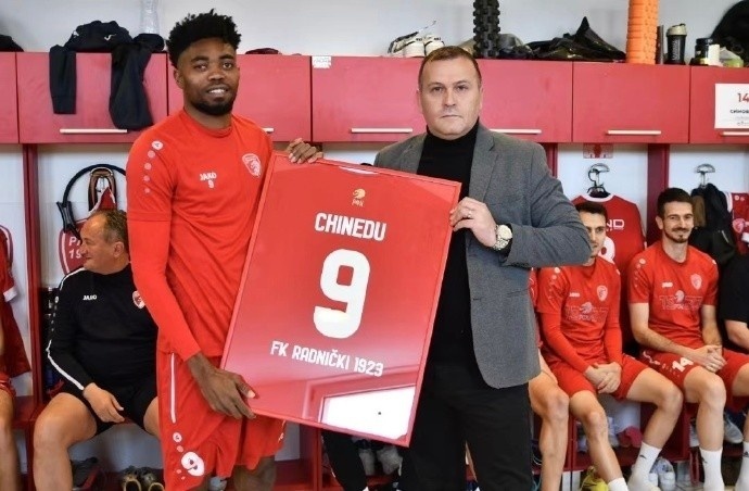 今年26岁的奇内杜,尼日利亚中锋,身高1.92米,去年冬窗加入劳动1923俱乐部,他本赛季为球队出场18场塞尔维亚超级联赛,贡献6个进球,德转目前身价30万欧元。