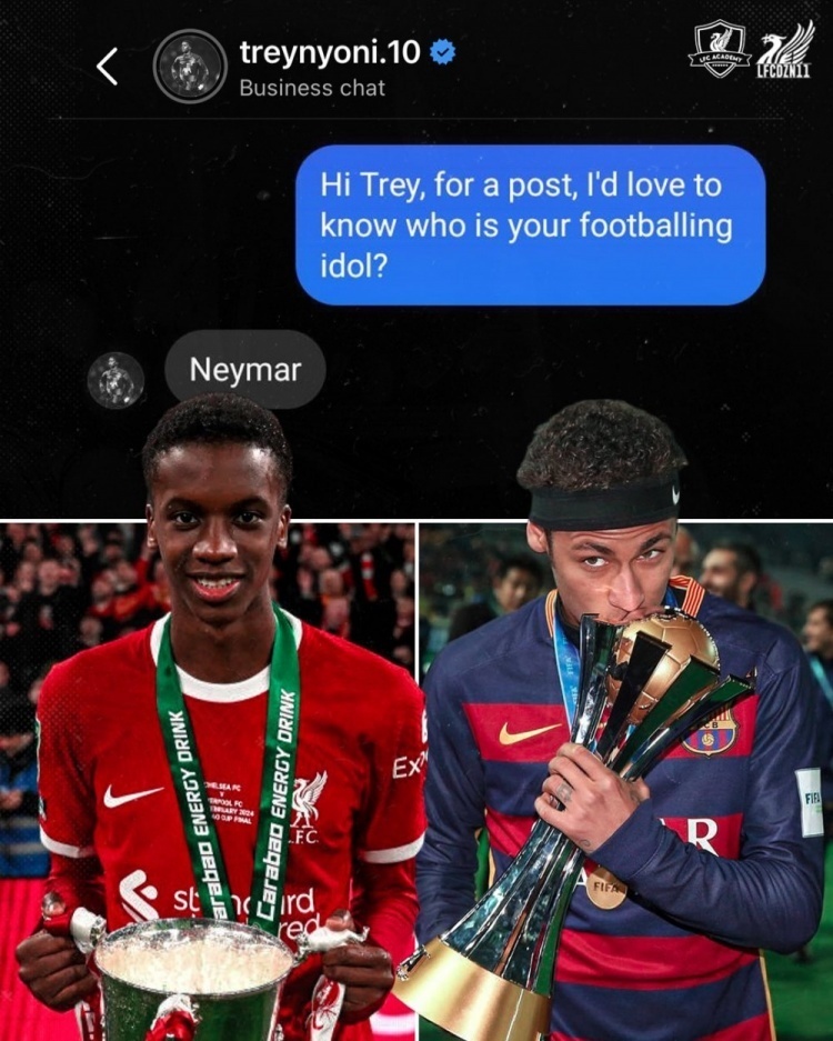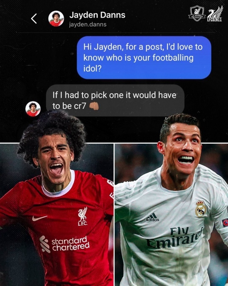 3月2日,利物浦球迷lfcdzn11最近通过社交媒体的私人信息联系了利物浦年轻球员布拉德利和尼奥尼,并询问了他们的足球偶像是谁。