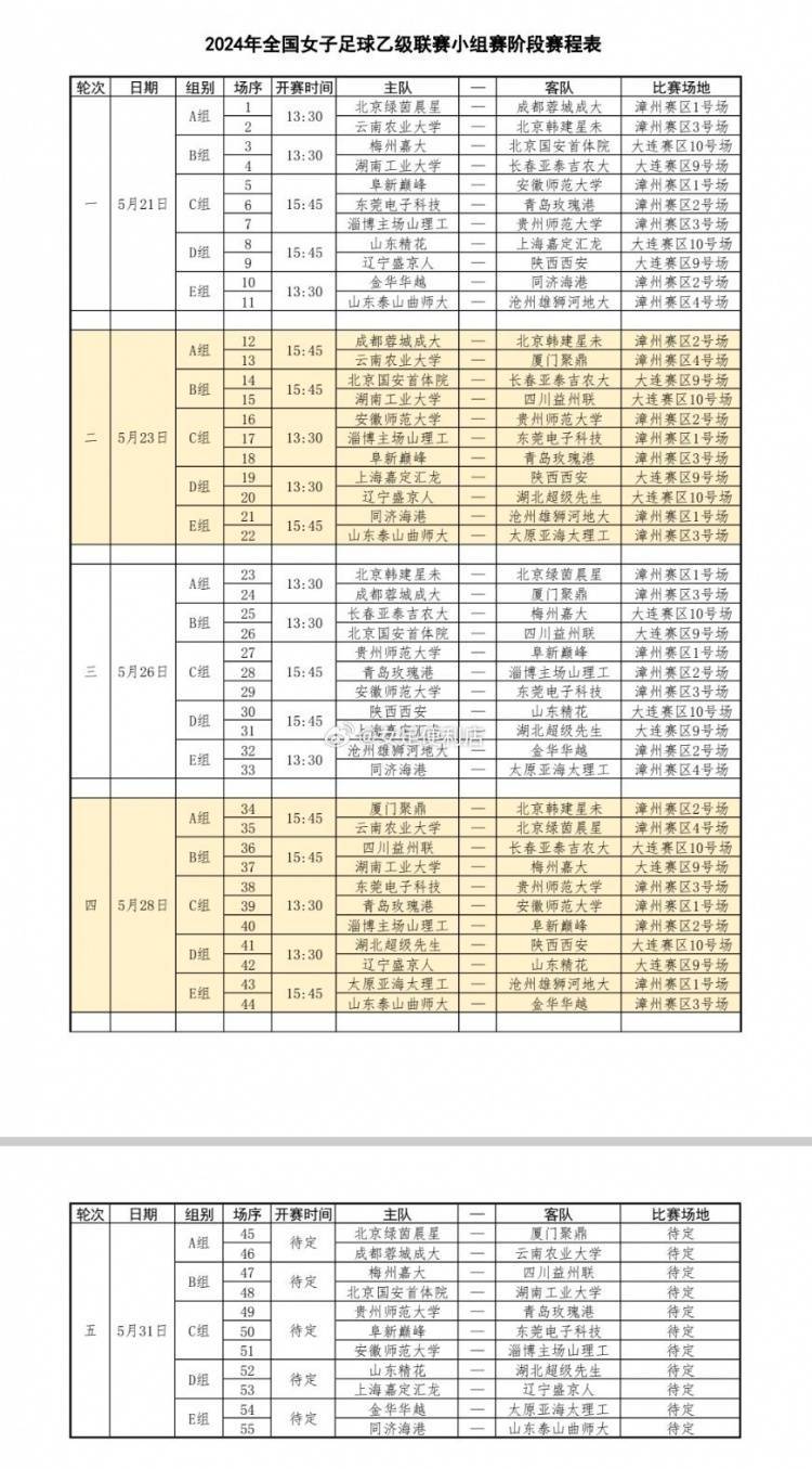 五月十三日,博主“女足便利店”在社会媒体上公布了2024赛季女乙小组赛赛程。
